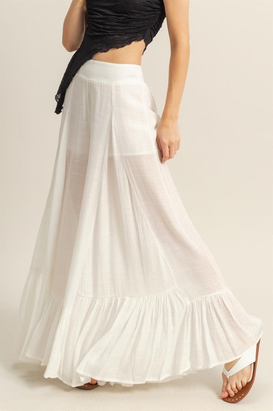 HYFVE High-Waist Ruffle Flared Wide Leg Pants