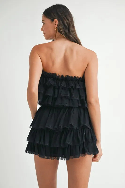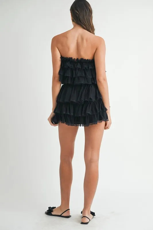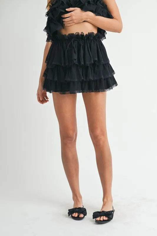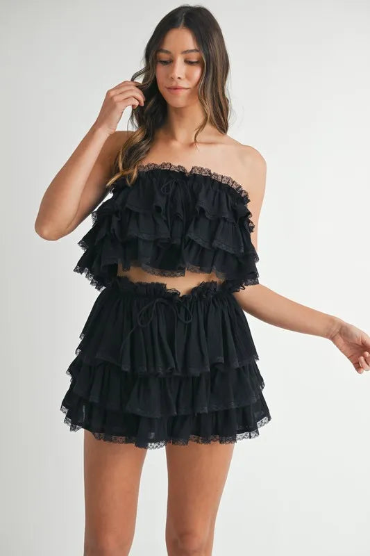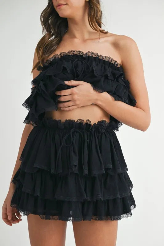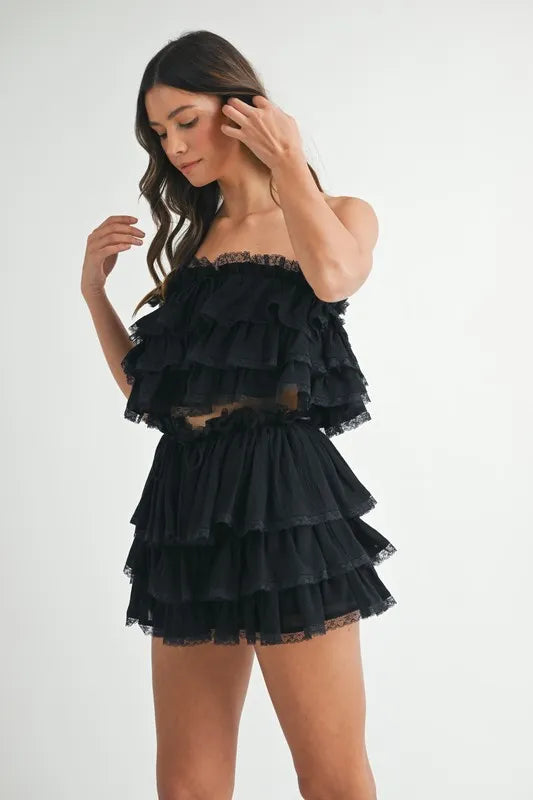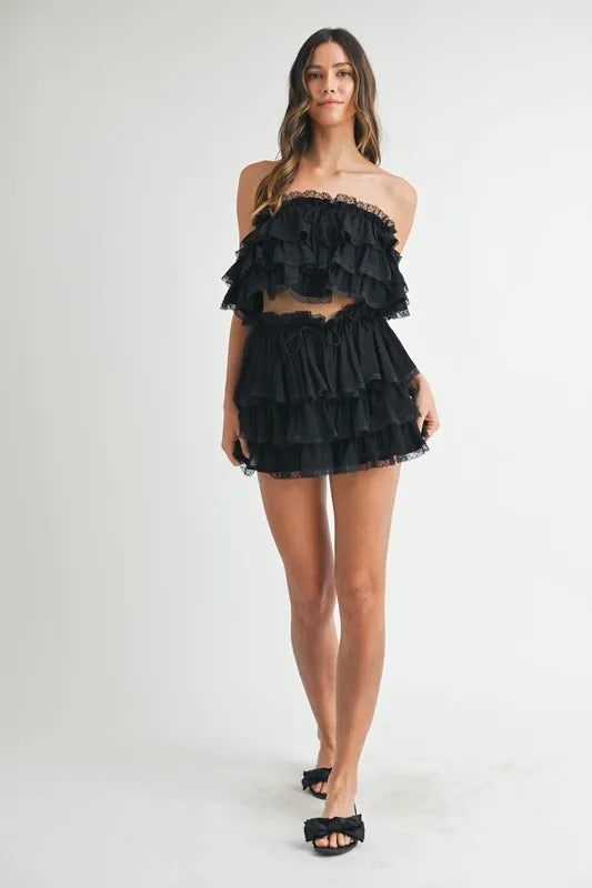 MABLE Ruffle Layered Crop Top and Mini Skirt Set