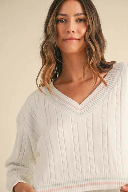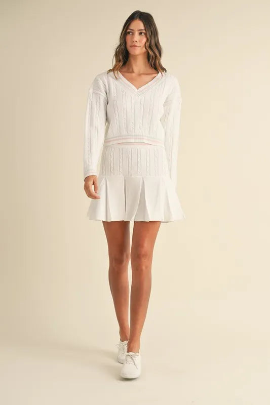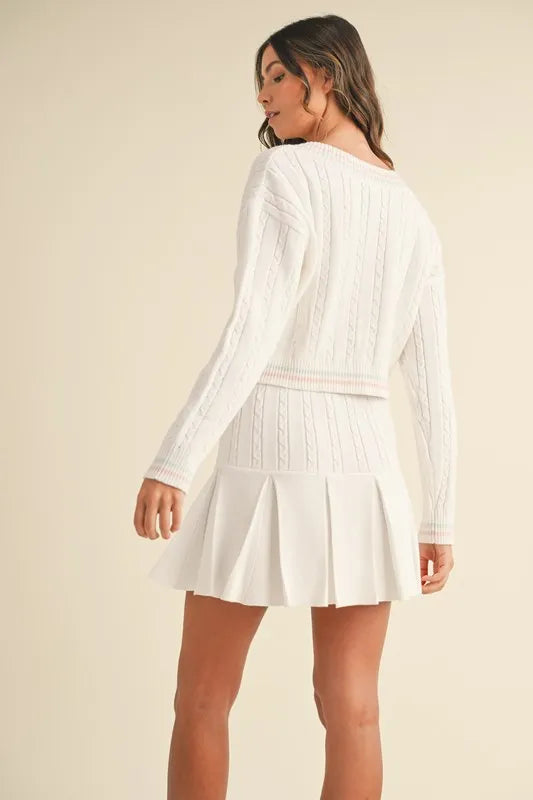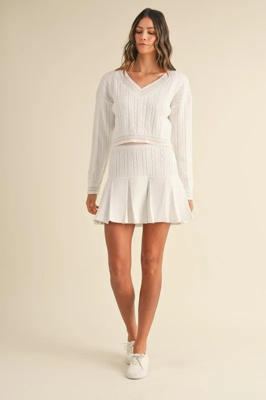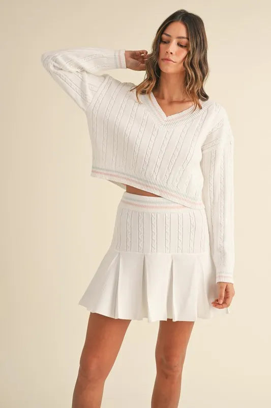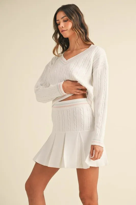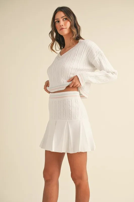 MABLE V-Neck Varsity Crop Knit Sweater and Skirt Set
