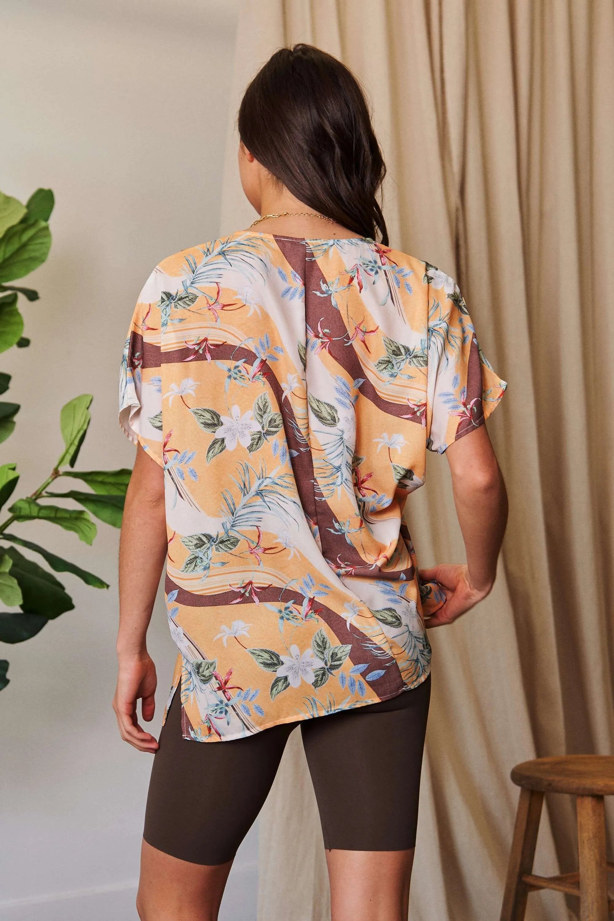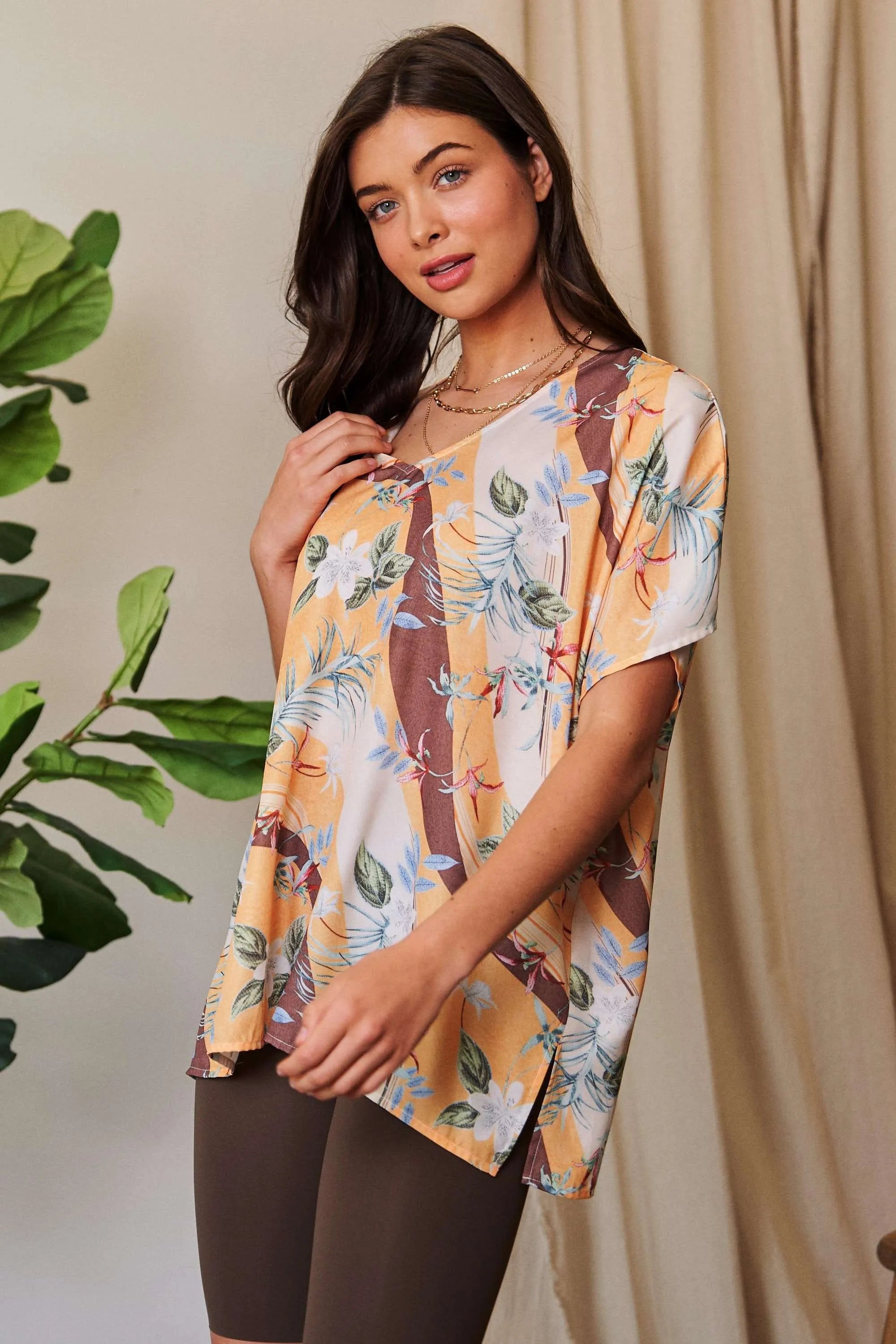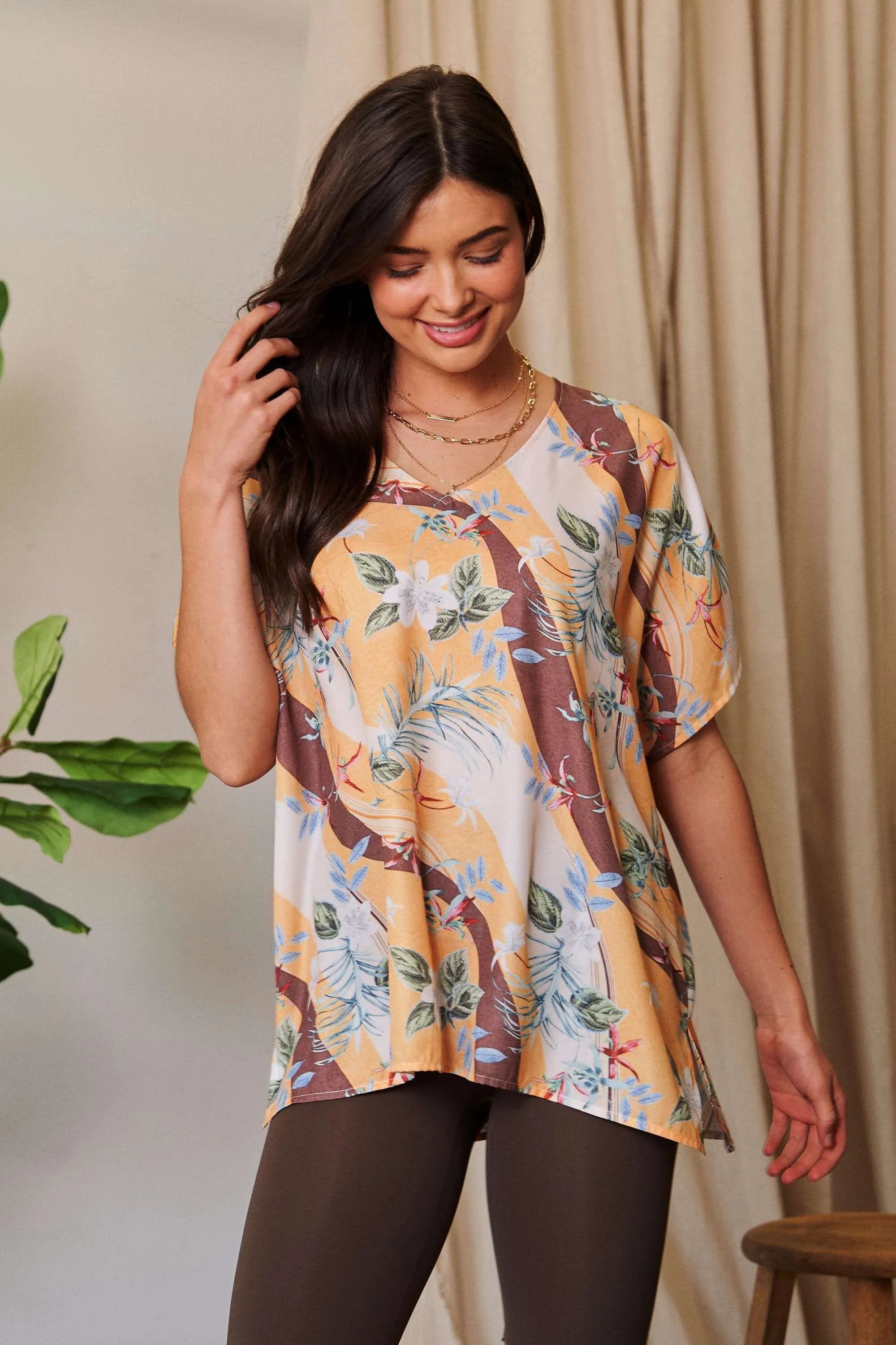 Davi & Dani Floral Printed V Neck Short Sleeve Loose Fit Top