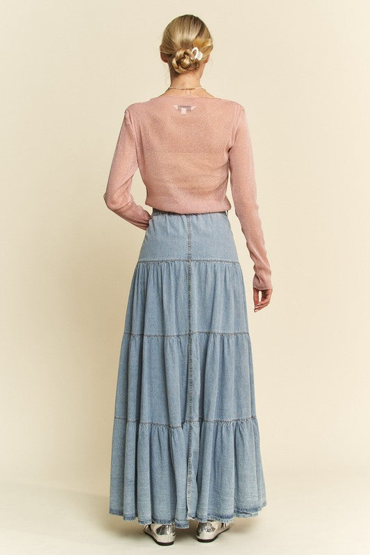 Davi & Dani Glitter Mesh Lettuce Hem Long Sleeve Top