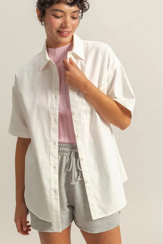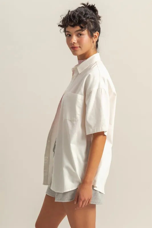 HYFVE Short Sleeve Button Down Oversized Shirt