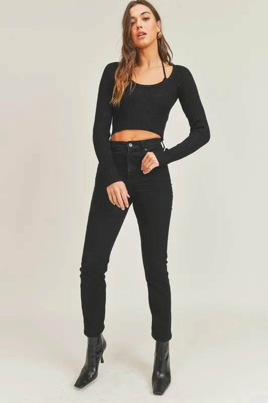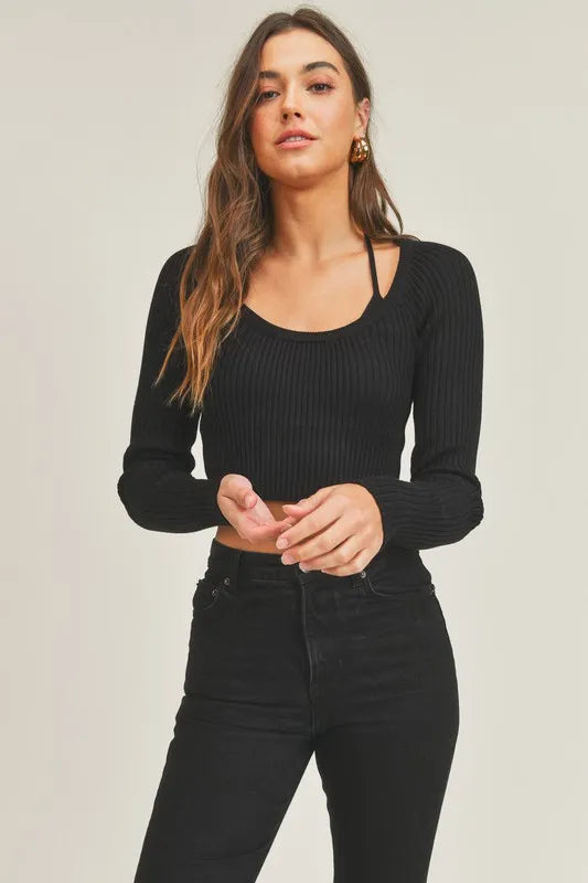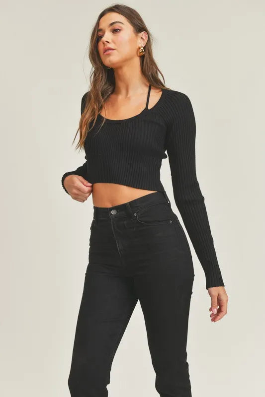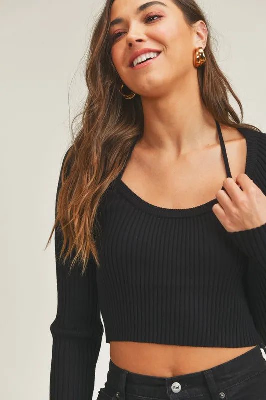 MABLE Long Sleeve Crop Sweater Top and Inner Bra Set