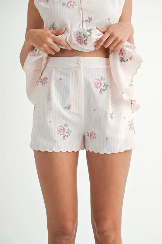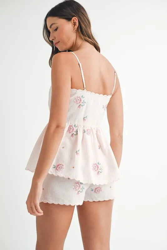 MABLE Stripe Embroidered Peplum Cami and Shorts Set